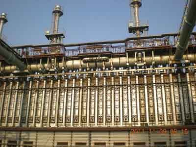 鞍鋼股份化工總廠焦?fàn)t四期改造工程位于遼寧省鞍山市鞍鋼廠區(qū)西北部,是年產(chǎn)150萬(wàn)t焦炭的焦化項(xiàng)目,采用JNX3-70-1型2x60孔復(fù)熱式焦?fàn)t,采用廢氣循環(huán)和多段加熱組合燃燒技術(shù),是863項(xiàng)目課題一“超大容積頂裝焦?fàn)t裝備與技術(shù)開(kāi)發(fā)”的依托工程。該工程榮獲了2012年度冶金行業(yè)優(yōu)質(zhì)工程。