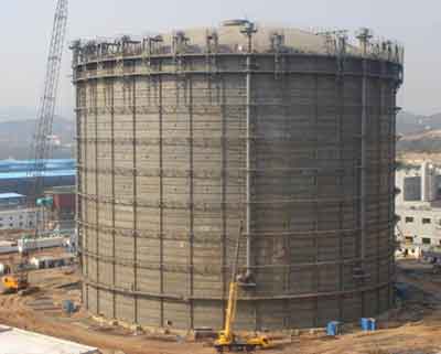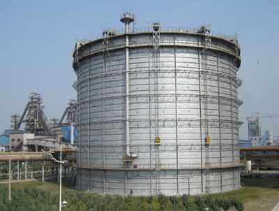 國內(nèi)首臺自行設(shè)計的最大的橡膠膜儲氣柜——天鐵15萬m3煤氣柜工程